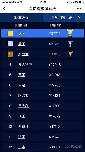 - 查询旅游热点目的地、目的地指导价格、目的地国内客源分布等等
