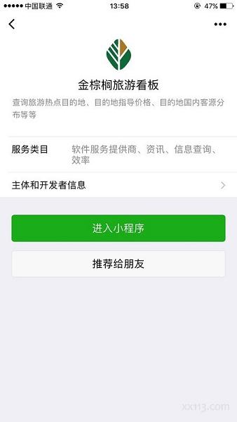 微信扫一扫,使用小程序- 金棕榈旅游看板小程序简介