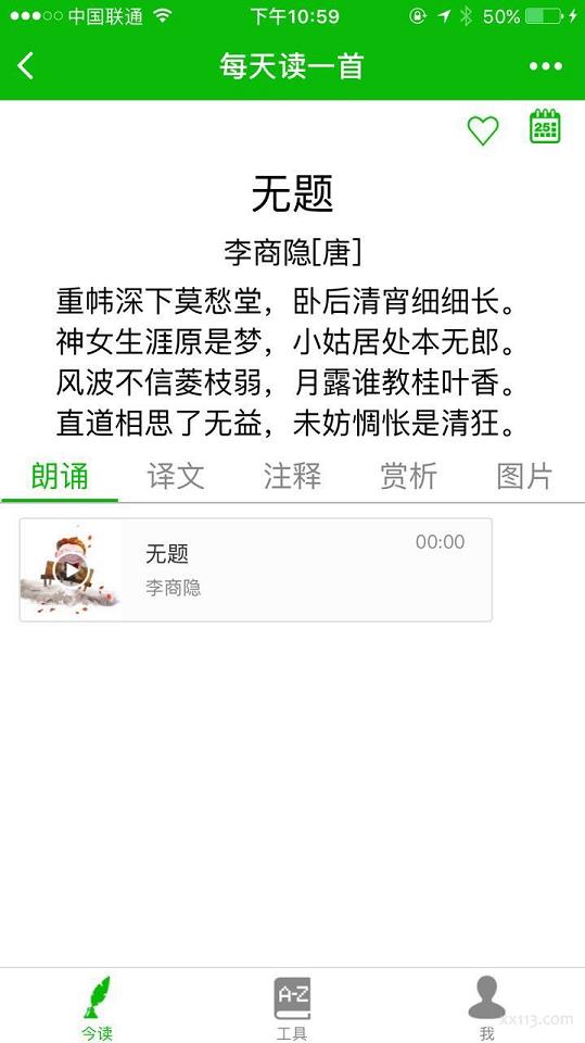 - 每天读一首经典诗词,附带字典词典查询功能。